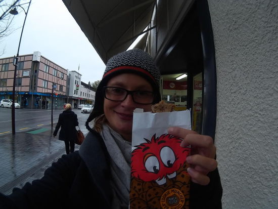 Leider fängt es an zu regnen. Hunger habe ich auch, also mache ich mich auf den Rückweg. Ich komme an der Cookie Bar vorbei, wenn ich schon keinen Fergburger esse, sollte ich wenigstens die tollen Cookies probieren. Ich schaue mich um und entdecke Geschenkschachteln mit Cookies zu 5$, die man für 3,50$ weltweit an jede Adresse versenden kann.