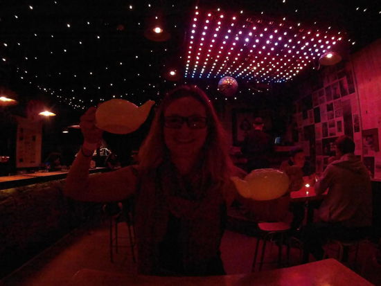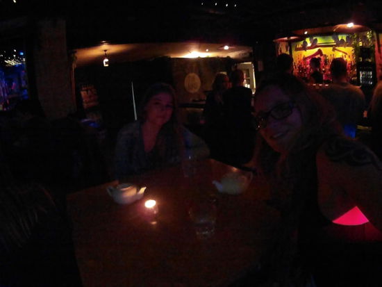 Ich will noch schnell Geld abheben, um Krissi die 25$ für den Crawl wiedergeben zu können. Vor uns stehen zwei Typen am ATM, die ewig brauchen. Was machen die denn da? Karte rein, Karte raus, wenn erbeim ersten Mal kein Geld ausspuckt, dann tut ers beim zweiten Versuch auch nicht. Sorry, meinen die beiden und mir tun meine fiesen Gedanken schon wieder leid. Gegenüber der ATM wird frei, gehen wir also dahin. Ich will 50 $ abheben, aber es funktioniert nicht. Was ist jetzt los? Transaction invalide? Ich versuche es nochmal am mittlerweile freien Geldautomaten auf der anderen Seite und der teilt mir mit, dass ich nicht genug Geld auf dem Konto habe. Das kann doch gar nicht sein? Ich versuche es nochmal mit einem kleineren Betrag und nochmal. Mit demselben Ergebnis. Kann es sein, dass mein Limit erreicht ist? Ich habe ja am 01. April 1.200 für das Tattoo abgehoben. Jetzt bin ich diejenige, die ihre Karte immer wieder reinschiebt. Dann habe ich nur noch etwa 20$.Macht nix, meint Krissi, jetzt lass uns erstmal Feiern gehen. Ich habe zwar auch nicht so viel mit, aber noch etwas im Hotel und Du klärst das dann morgen. Wir geben dem Türsteher unsere Pässe und betreten das 'the find', Spezialität sind Cocktails aus Teekannen. Direkt am Eingang steht der Kiwi Crawl Guide. Wir melden uns an, bekommen ein Bändchen und eine Stempelkarte für die Shots in den Bars. Kann aber sein, dass es gar nicht stattfindet, denn es müssen mindestens 10 Leute sein und aktuell sind es Vier, mit uns. Wir trinken erstmal den kostenlosen Shot, irgendwas mit baleysähnlichem Likör oben drauf. Dann bestellen wir zwei Teapots mit unterschiedlichen Cocktails, die wir uns teilen wollen. Meiner ist lila, Krissis pink und beide schmecken wie Medizin, prrrr.