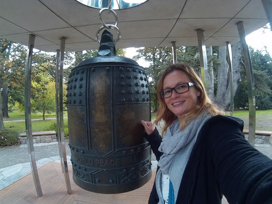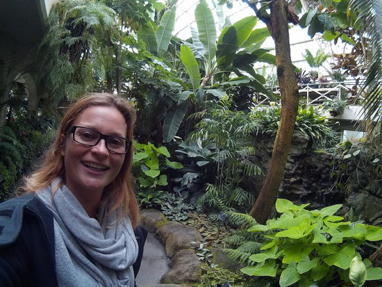 Als ich dann am Botanical Garden bin, habe ich doch nur noch eine halbe Stunde. Ich laufe ein wenig am Fluß entlang, sehe die Glocke des Friedens, werfe einen Blick in den Rosengarten und entdecke das Gewächshaus. Das ist wirklich eine Überraschung. Ein Raum für tropische Pflanzen, einer für blühende Pflanzen, der wunderbar bunt ist und einer mit Kakteen. Man darf einfach so durchlaufen, ein Schild weist darauf hin, bitte keine Pflanzen mitzunehmen.