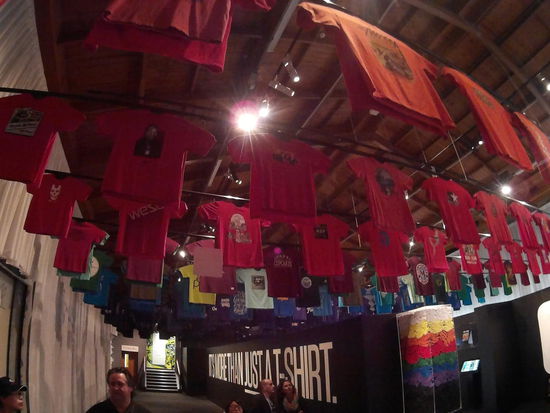 Auf unsrem Weg in die nächste Austellung kommen wir an einer temporären Austellung vorbei, in der hunderte von T-Shirts hängen. Der Typ, der sie dem Museum geliehen hat, besitzt wohl tausende davon. Er muss also nicht nackt herumlaufen.