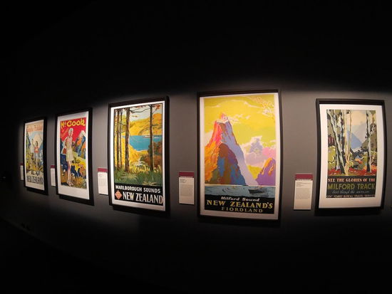 Weiter geht's durch einen Raum, in dem alte Werbeplakate für Urlaub in Neuseeland ausgestellt sind, die Künstler, die dafür engagiert wurden, schämten sich oft ihrer Arbeit, da sie die Bilder nicht für Kunst hielten.