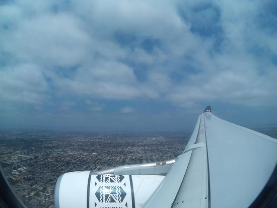 Zwei Stunden vor Ankunft geht das Licht im Flieger an und es gibt Frühstück. Das ist nicht so lecker. Eierpampe mit Maissoße und Würstchen. Ein lascher Obstsalat. Der kleine Kuchen ist aber gut und auch der Joghurt. Ich habe ohnehin nicht schon wieder Hunger.