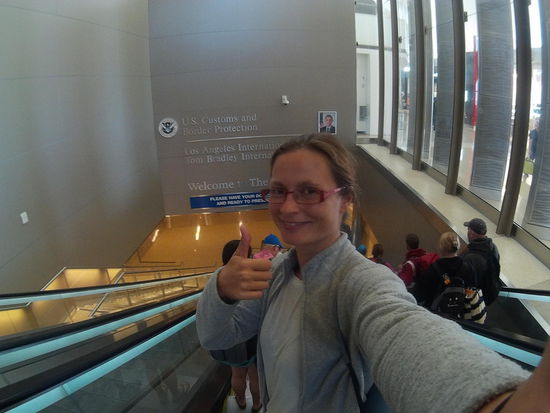 Rechts amerikanische Staatsbürger, links andere. Es gibt jede Menge Schalter. Ich stelle mich an und scherze mit dem Pärchen vor mir. Sie kommen aus Neuseeland. Wir werden weiter nach hinten zu weiteren Schaltern gescheucht. Wohin jetzt? Hier ist die Schlange auch nicht kürzer. Egal, ich habe mich ohnehin auf lange Wartezeiten eingestellt. Mein Schalterbeamter stellt locker flockig ein paar Fragen, muss er das jetzt wissen oder macht er Konversation? Fingerabdrücke scannen, ein Foto, auf dem ich sogar lächeln darf. Fertig.