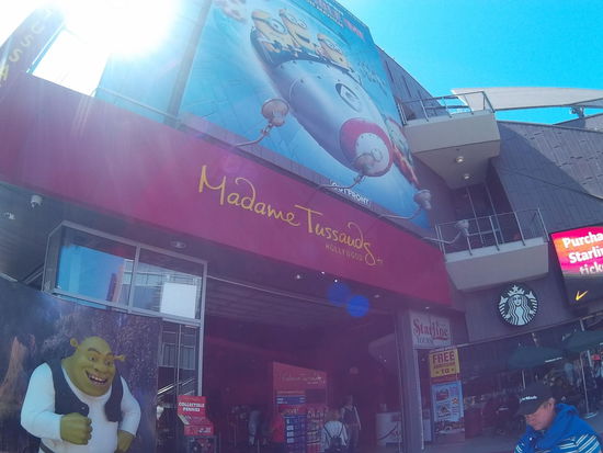 Nach einer Station fahre ich neugierig aus dem Untergrund wieder nach oben. Wow, es erschlägt mich fast, das ist der Hollywood Boulevard, wie man ihn aus dem Fernseher kennt. Irgendwo spielt Musik, jede Menge Leute laufen herum, Touristen, Einheimische, als Stars und Comichelden verkleidete vermutlich arbeitslose Möchtegernschauspieler, mit denen man sich gegen Entgelt fotografieren lassen kann. Von irgendwoher kommt Musik, gegenüber das Kino hat eine riesen Leinwand als Reklame an der Fassade befestigt. Überhaupt ist alles hier etwas überproportioniert.