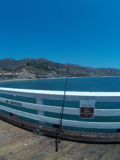 Mit dem Getränk schlendern wir den Pier hoch und beobachten die Surfer. Hier gibt es eine lange linksdrehende Welle. Ich könnte sie surfen denke ich. Wie schade, daß wir nicht genug Zeit haben. Wir gehen den Pier wieder runter, ich sage Cheers zu den zwei Promotern.