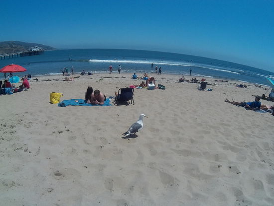 Gegen Mittag erreichen wir Malibu. Am Strand sind wir schneller vorbei, als wir gucken können. Wir halten in der Stadt an, die überraschend klein ist, während googlemaps immer noch behauptet, Malibu läge weit vor uns.