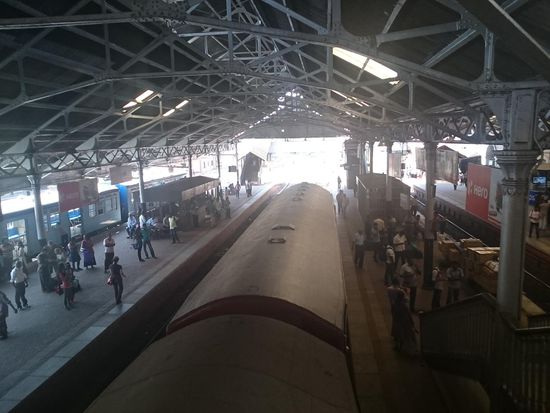 In Colombo hab ich eine Stunde Aufenthalt. Ich hebe Geld ab, kaufe Früchte, wehre Tuktuk und Taxifahrer ab und schaue mir den Betrieb an den Gleisen an. An meinem Bahnsteig sitzen irgendwie nur Einheimische. Der Zug kommt etwas verspätet, ich frage nach. Ja, das ist der Richtige. Das Abteil sieht aus, wie eine S-Bahn. Diesmal gibt es gleich einen Sitzplatz.