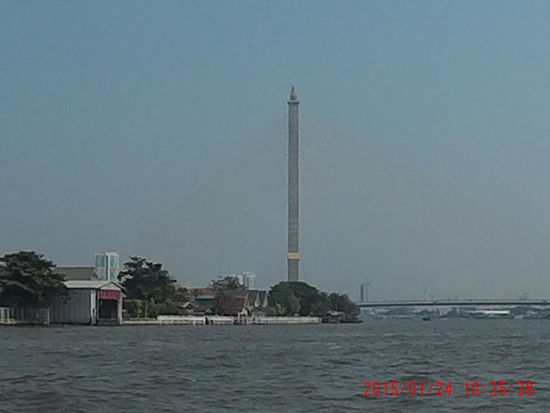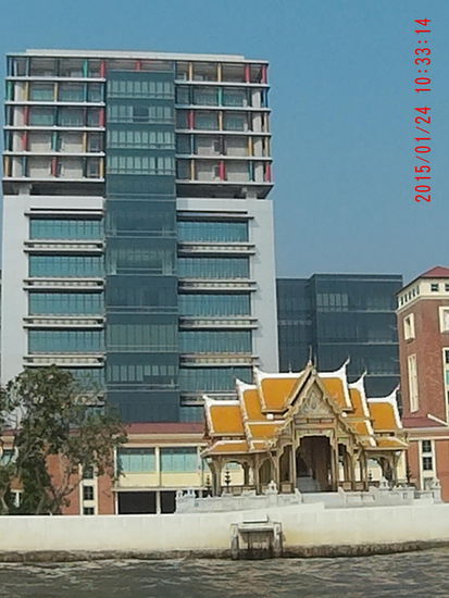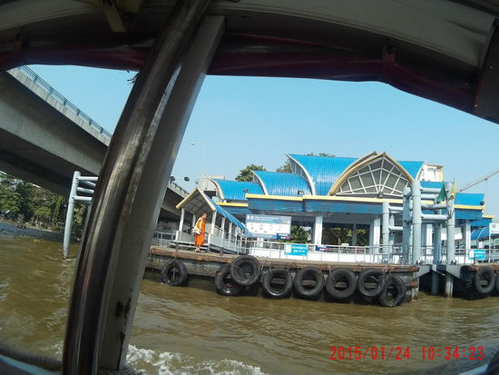 Kleiner Exkurs zum Thema, wie kommt man in Bangkok von A nach B. Nicht dass ich da nach 2 Tagen Experte wäre...Es gibt die U- und Hochbahnen, von denen ich ja schon geschwärmt habe. Die verkehren allerdings nicht in dem zentralen Gebiet der Stadt, dass in einer Schleife des Chao Phraya River liegt. Müssen Sie auch nicht, denn es ist ja eine viel bessere Sache hier auf dem Fluß von A nach B zu kommen. Deswegen gibt es die Expressboote. Sie verkehren regelmäßig entlang der Anleger auf beiden Flussseiten. Die unterschiedlichen Linien haben unterschiedliche Stops, aber die Hauptstops sind bei allen die gleichen. Es gibt ein Farbsystem zur Unterscheidung. Die Boote der Linien sind an der Farbe der Flaggen auf ihren Dächern zu erkennen. Die blaue Linie hat mehr Sitzplätze, Erklärungen vom Tonband und ist ca. viermal so teuer.