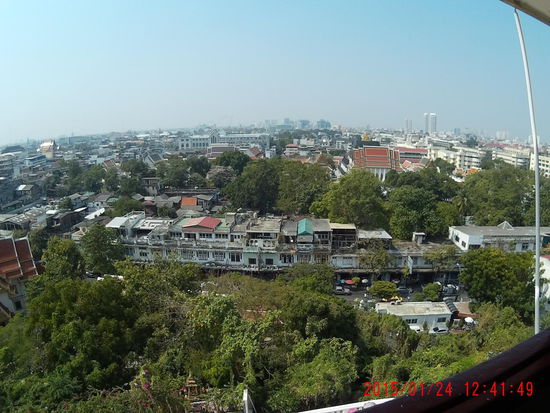 Immer weiter geht es hinauf und es eröffnen sich die ersten Blicke auf Bangkok. Untermalt wird die Szenerie durch eine Litanei aus Lautsprechern, die für eine ganz eigene Atmosphäre sorgt.