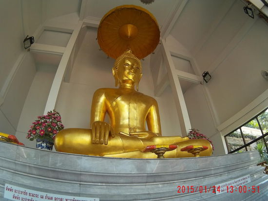 So, wo ist denn jetzt dieser Fluß? Laut Karte scheint der Golden Mountain zwischen zwei Flussarmen zu liegen. Also erst den einen überqueren, dann vor dem anderen rein? Mit gerunzelter Stirn auf die Karte vom Flughafen starrend, sehe ich wohl wie das perfekte Opfer aus. Jedenfalls spricht mich jemand an. Wo ich denn hinwill? Golden Mountain? Hat jetzt zu. Aber der große Buddha hat geöffnet. Da auf der Karte. Nur ein bisschen weit zu Laufen. Ist ja auch heiß heute. Äh, ich drehe mich suchend um, da muss doch bestimmt irgendwo sein Tuktuk stehen? Ah ja, da steht es natürlich. Ich sage dem Fahrer, dass ich doch mal zum Golden Mountain weiter gehe, um mir ein Bild zu machen.