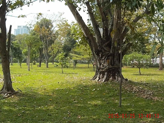 Der Park ist wunderschön! Ich bewundere die alten Bäume und der Kontrast zu den umliegenden Wolkenkratzern fasziniert mich. Joggingwege gibt es auch. Dann sehe ich einen ersten Waran. Natürlich habe ich die Kamera noch nicht schussbereit. Aber ich bekomme meine Bilder und sehe später sogar nochmal Warane. Ausserdem ein Freiluftfittnessstudio mit richtigem Eisen für richtige Männer. Mehrere kleine Reiher, viele viele Fischer, die von den Parkbesuchern fleißig gefüttert werden. Damit füttern sie wohl nebenbei auch die Warane, die vermutlich die Fische fressen. Natürlich gibts auch hier Schreine.