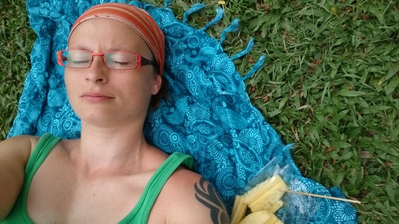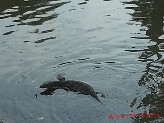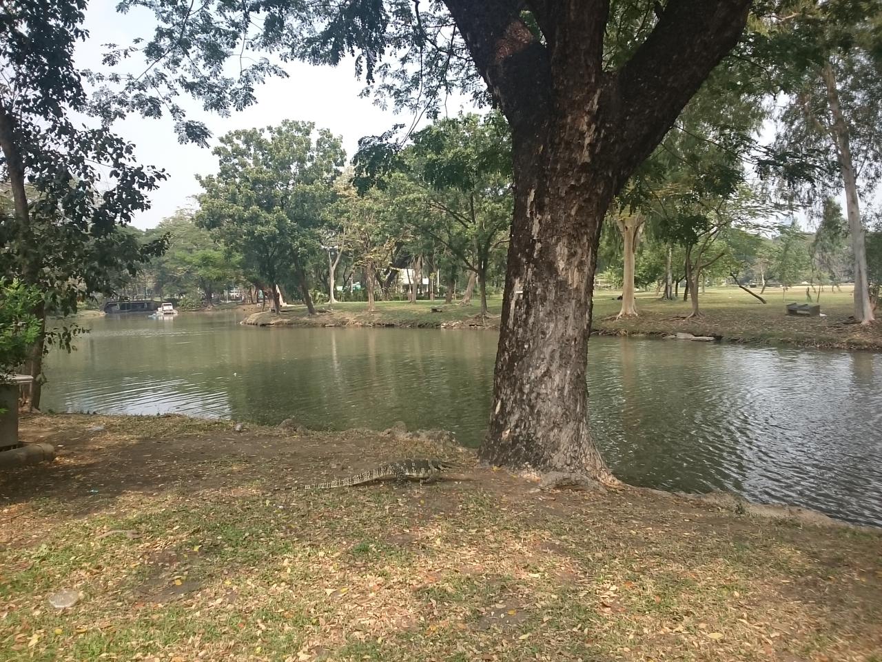 Endlich die Oase erreicht. Nach den Strapazen lege ich mich direkt hinter dem Eingang in der Nähe eines kleinen Sees in den Schatten der Bäume. Die Fotos von gestern (und das sind ne Menge) von der Speicherkarte der Cam auf das Tablet rüberladen, chillen und frühstücken. Nur die lautstarke skandinavische Invasion direkt nebenan stört ein wenig. Vor allem als die Kinder anfangen, direkt neben mir Fußball zu spielen. Außerdem sehe ich auf der Uhr des Türmchens nebenan, wie die Zeit verrinnt. Also auf und den Park erkunden. Ich habe gelesen, es soll hier frei lebende Warane geben. Die möchte ich unbedingt sehen.
