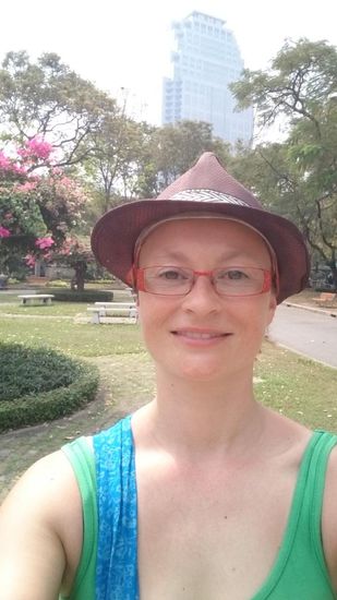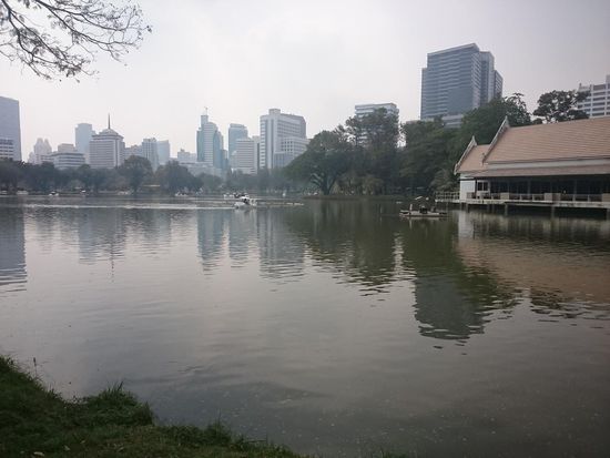 Eisgekühlt, dank der Klimaanlage im Zug, erreiche ich die Station. Den Lumphini Park zu finden, ist auch kein Problem. Ihn zu erreichen schon eher... Denn er liegt auf der anderen Seite einer recht großen Straßenkreuzung, an der es zwar eine Fußgängerampel gibt, die aber jetzt seit 20 Minuten auf rot steht. Derweil werde ich schön knusprig gebraten. Ich hatte mir schon gestern einen Sonnenbrand geholt und bin deshalb heute wenigestens eingecremt. Ausser mir steht hier auch niemand und drüben winkt der kühle Park. Schließlich werfe ich mein deutsches Empfinden über Bord und überquere die Straße ohne weiter auf grün für mich zu warten in der zwei Schritte vor, einen zurück Taktik... mache ich in Frankfurt schließlich auch oft genug.