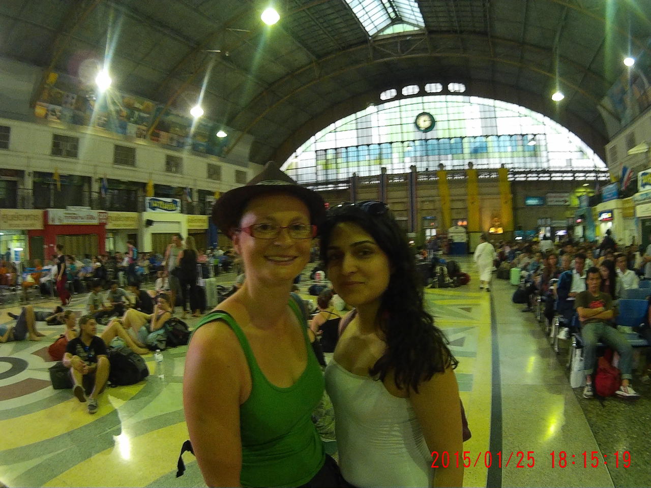 Den Bahnhof finde ich tatsächlich recht beeindruckend, sowohl architektonisch als auch durch seine Atmosphäre, da hunderte Rucksacktouristen auf dem Boden sitzen. Wir stellen unsere Rucksäcke zusammen und schwärmen aus. Abendessen und Vorräte für die Zugfahrt kaufen. Da ist ein KFC, gibt uns Pong fürsorglich mit auf den Weg.