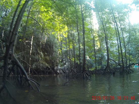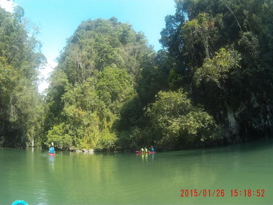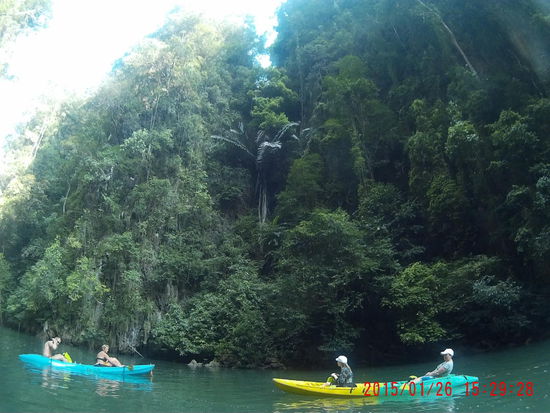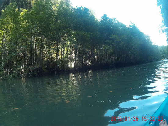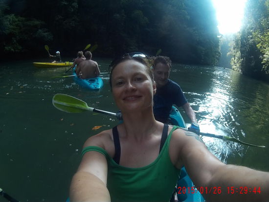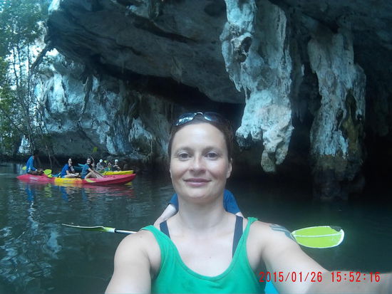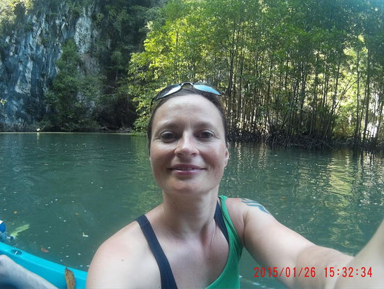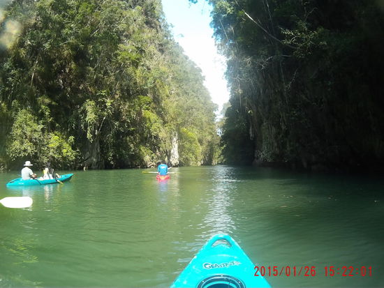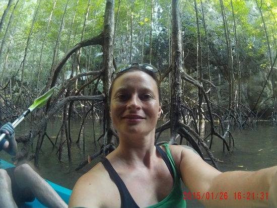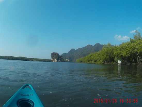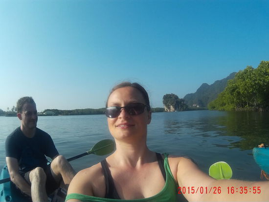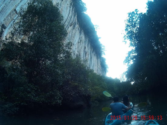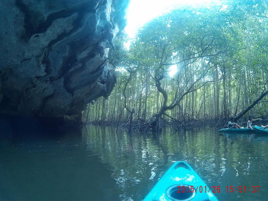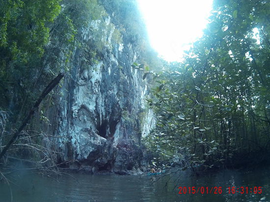 Weiter geht's durch den kleinen Canyon, die Felsformationen sind traumhaft schön. Immer wenn ich fotografiere, muss Hendrik alleine paddeln. Der Arme. Dann wird die Felswand links durch Mangrovenwälder abgelöst. Wir sammeln uns.
