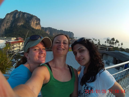 Dann gehen wir alle zur Partymeile von Ao Nang. Ein zentraler Platz, zig Bars drumherum, dahinter im Gebäude sind fast alle Clubs von Ao Nang informiert uns Pong. Jede Bar hat dasselbe Flair, willkommen in der Uniformität. Dafür ist die ganze Nacht happy hour und es gibt einen Shot umsonst.