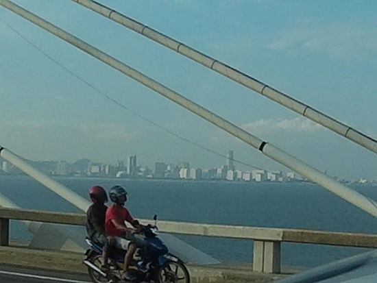 Weitere 3 Stunden brauchen wir bis Penang. Wir dösen alle vor uns hin, aber die Fahrt über die riesenlange Brücke nach Penang bekommen wir alle mit. Gar nicht so klein die Stadt.