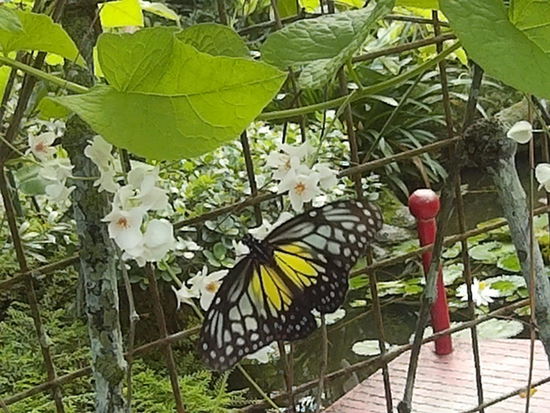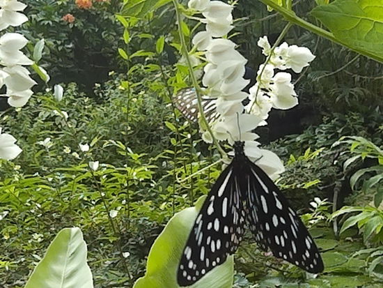 Die Nacht war ganz okay und wir checken pünktlich um 8.20 aus. Hendrik stößt dazu und Jeffrey unser Taxifahrer kommt und nimmt uns mit. Er erklärt wieder viel rechts und links des Weges und hält an einem Markt, wo wir an einem Straßenstand unglaublich günstiges und leckeres Gebäck zum Frühstück kosten. An der Straße sehen wir leider einen tödlichen Rollerunfall. Das schockt mich ziemlich. Ich muss wohl nochmal über den Plan, in Bali einen Roller zu mieten, nachdenken. Dann sind wir auch schon bald am Butterfly Garden.