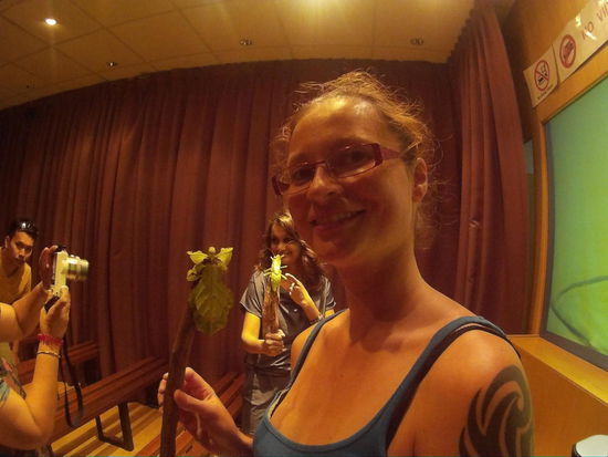 Dann wollen wir eigentlich gehen, stolpern aber in die Show, when Bugs meet Humans. Die beiden anderen sind erst nicht so interessiert, aber nachdem ich mich freiwillig gemeldet habe, um ein Tier zu halten, lassen sie sich doch überreden in der ersten Reihe Platz zu nehmen.