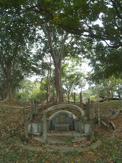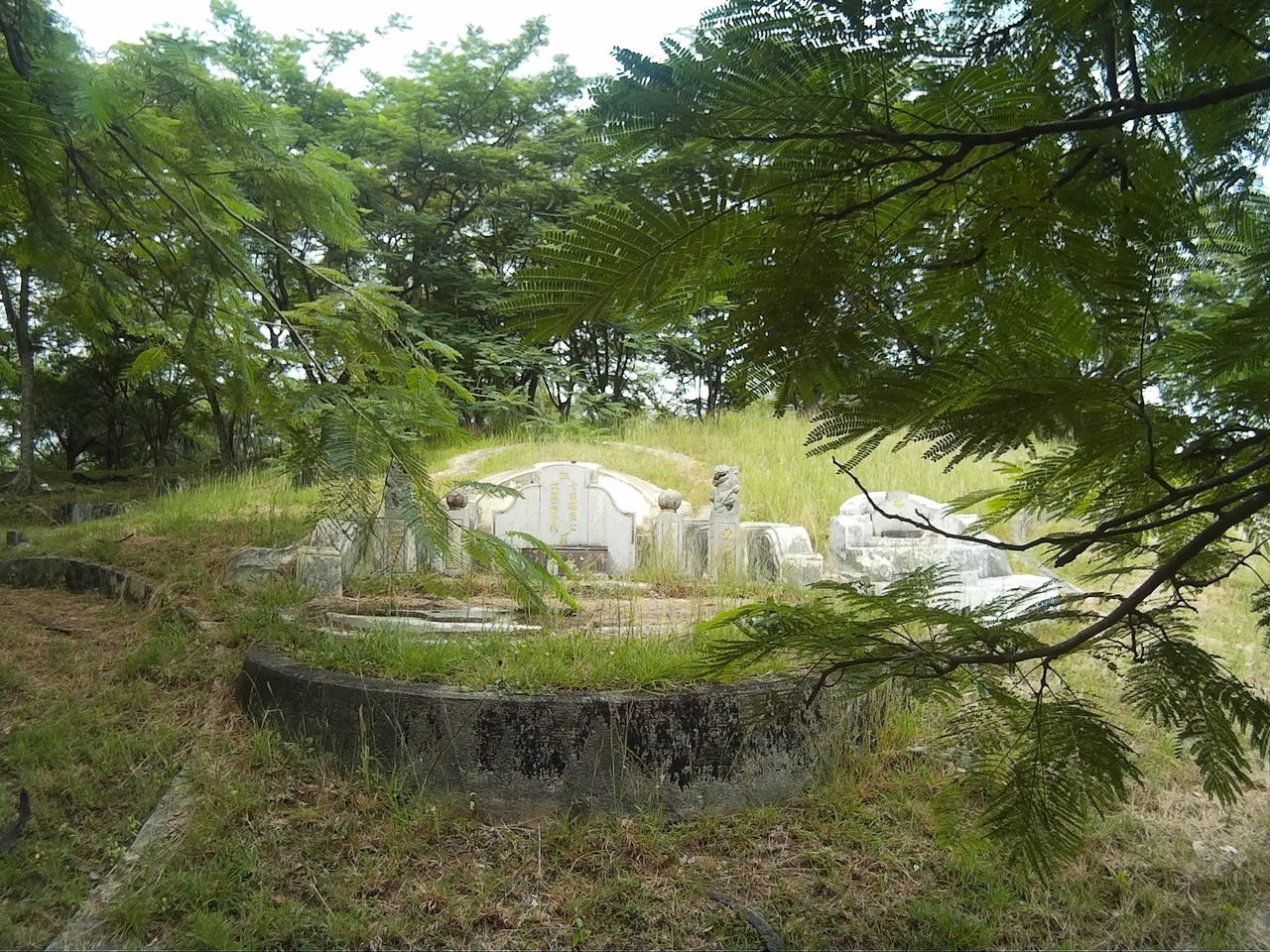 Ich steige die Treppen hinauf und bin fasziniert. Es ist ein alter chinesischer Friedhof. Die Grabmäler liegen unter malerischen Bäumen, die Atmosphäre ist irgendwie anderweltlich. Fast könnte man wirklich auf den Gedanken kommen, dass die Chinesen mit ihrem starken Glauben an Geister richtig liegen. Ich bin völlig gefangen von diesem Ort und laufe den Weg, der nur noch ein Pfad ist, immer weiter hoch und schließlich rechts rein. Erst bin ich völlig allein, dann treffe ich vereinzelt spazierengehende und joggende Asiaten. Hier ist es viel kühler, als unten in der Stadt.
