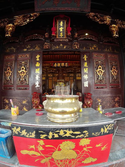 Ich schaue vom Balkon über die Jonker Street, dann setze ich mich auch auf den Boden, um kurz zur Ruhe zu kommen und die friedliche Atmosphäre zu genießen. Ab und an kommt eine Nonne vorbei und ordnet Räucherstäbchen neu.