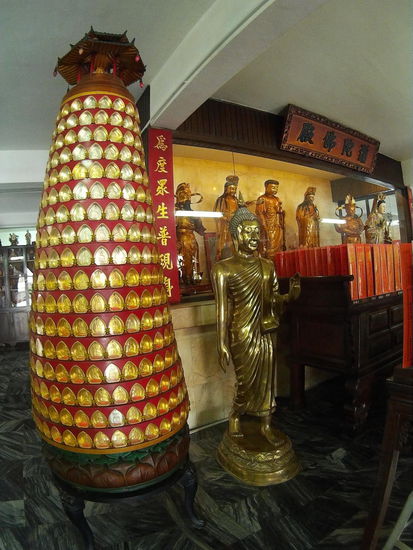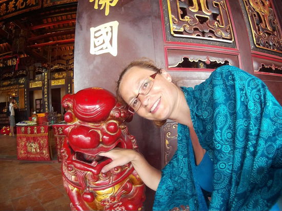 Bürgersteige gibt's hier nicht mehr und ich muss auf der Straße laufen, was bei den hier herrschenden Verkehrsbedingungen ein bisschen gruselig ist. Dann finde ich den Tempel. Erst bin ich allein, aber dann kommt eine Busladung chinesischer Touristen.