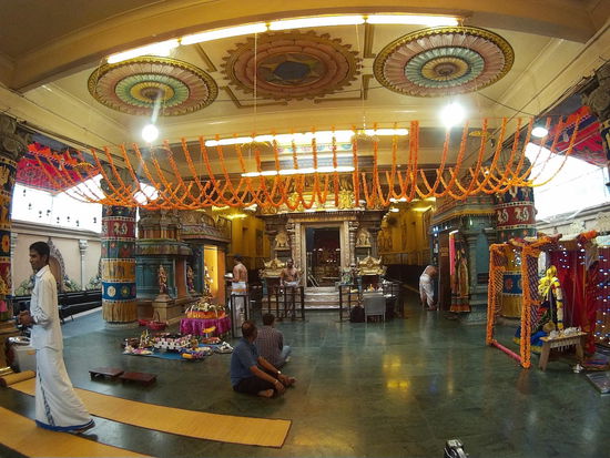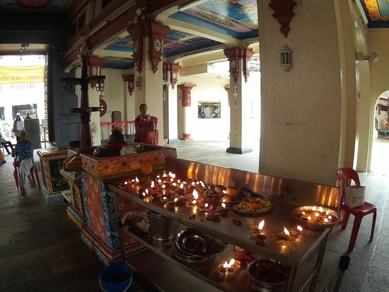 Deshalb geht's im zum Glück nachlassenden Regen weiter zum Sri Veeramahaliamman Tempel. Der hat mich sehr beeindruckt. Er ist der Göttin Kali gewidmet, von der ich schon immer fasziniert war (ich führe das auf Indiana Jones zurück) und ich habe das Glück, dass gerade auch eine Zeremonie stattfindet.