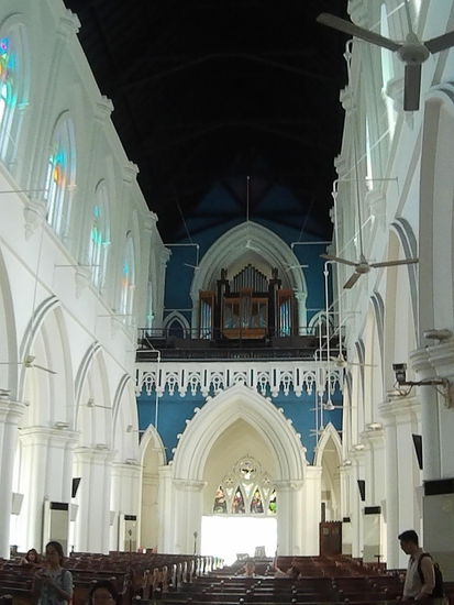 Als nächstes steht die St. Andrews Kathedrale auf dem Plan. Ein toller Bau und von den Mitarbeitern im Informationszentrum davor werde ich sehr freundlich begrüßt und zur Besichtigung eingeladen. Das Innere des Tempels empfinde ich nach all der Pracht der hinduistischen und chinesischen Tempel als puristisch kahl.