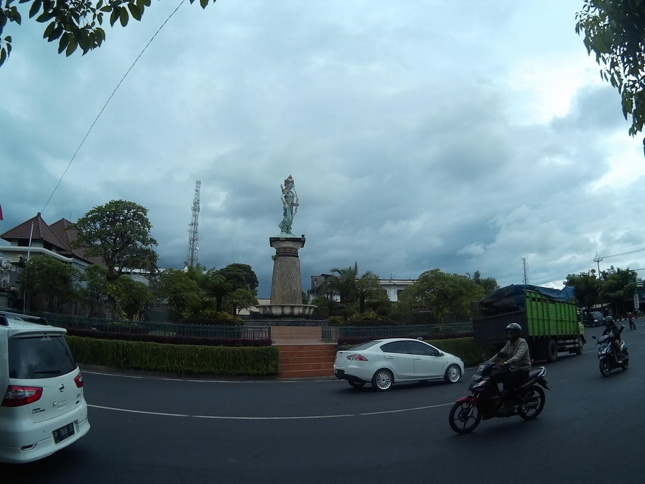 Aber als ich an einer Verkehrsinsel mit einer Statue einen Fotostop einlege, springt der Roller nicht mehr an. Ich drehe den Zündschlüssel und er gibt keinen Mucks von sich. Oh Mist. Ich versuche immer wieder, den Schlüssel zu drehen und den Motor zu starten, höre aber nichtmals den Anlasser. Was mach ich denn jetzt.