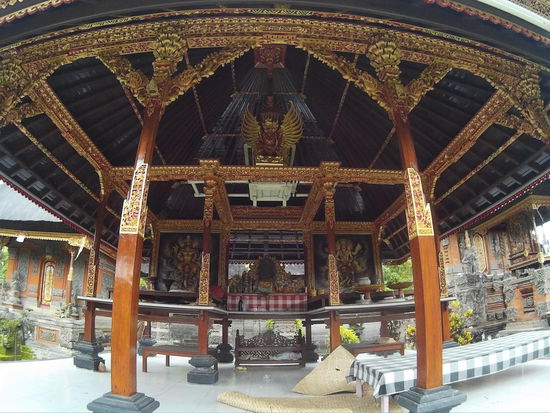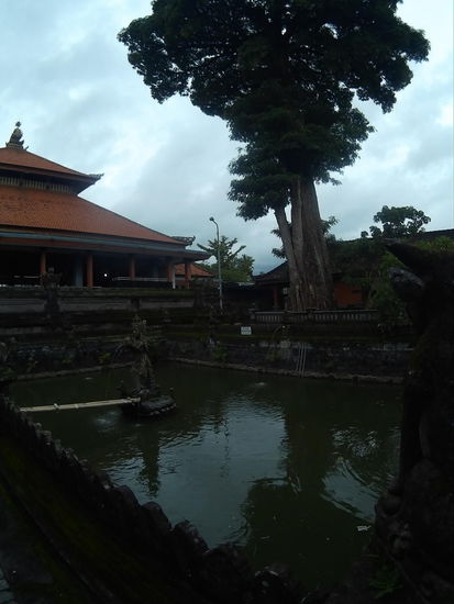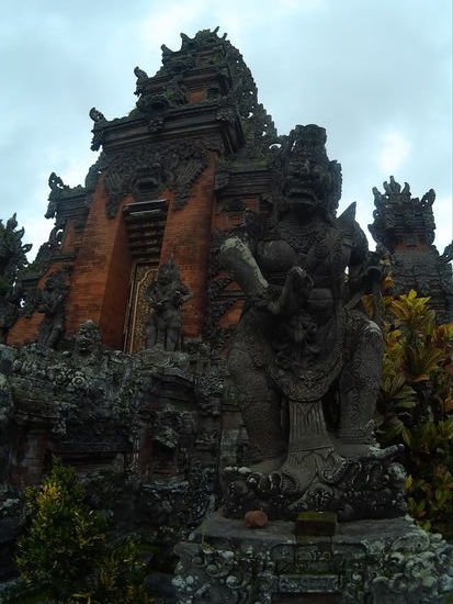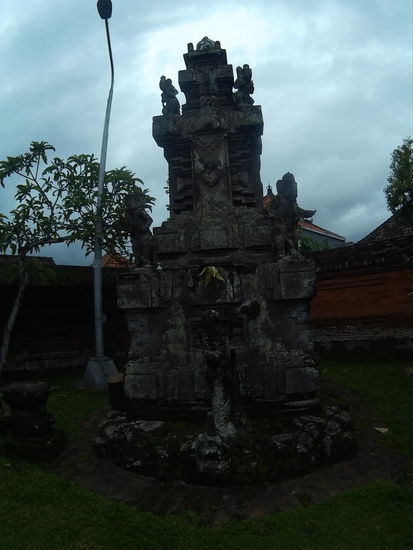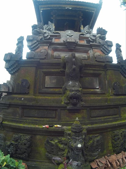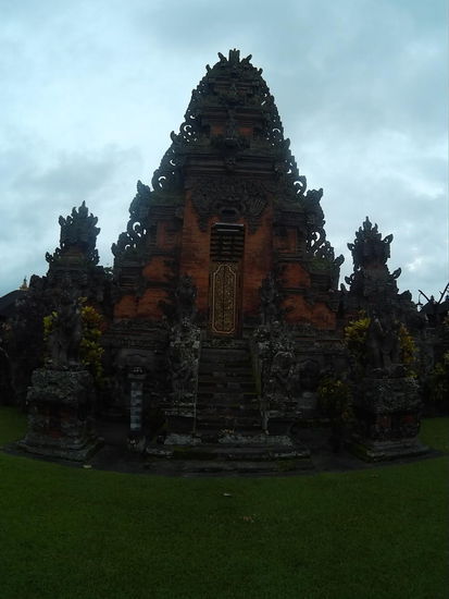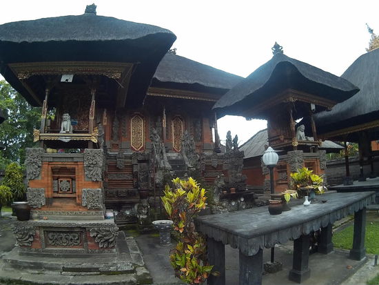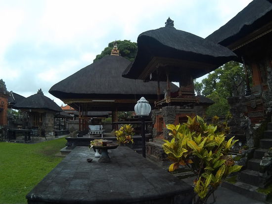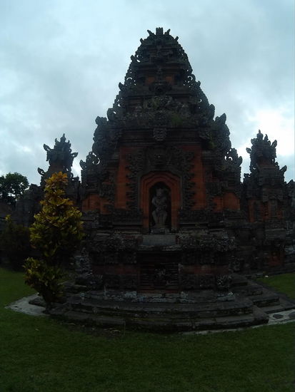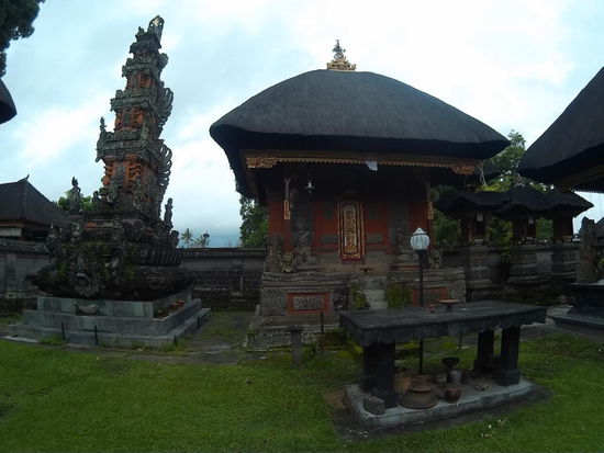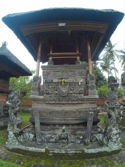 Dieser Tempel ist mehr ein Garten. Oft bestehen balinesische Tempel nicht aus einem Gebäude oder einem überdachten Areal, sondern aus mehreren Schreinen, Göttersitzen und Pagoden in einem Areal, meistens ist noch ein Banyan Baum mit riesigen Luftwurzeln vertreten.