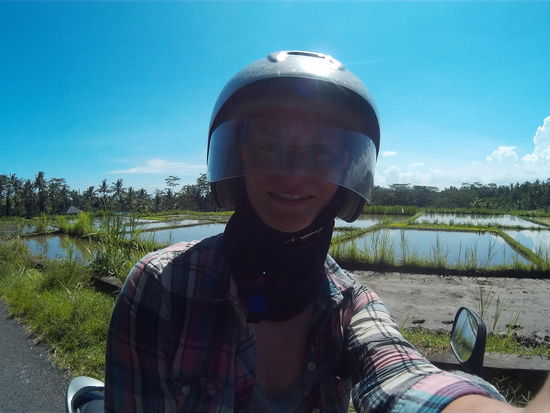 Ich sattle den treuen Roller und fahre in den Sonnenuntergang. Wer auch immer dieses Cowboy-Western-Stereotyp erfunden hat, hat zwar über die Symbolik, nicht jedoch über die praktische Anwendung nachgedacht. Die Sonne blendet enorm. Ich kann teilweise einfach gar nichts sehen. Das ist auf einem Pferd im Western vielleicht ja ok, auf einem Roller im balinesischen Straßenverkehr aber ziemlich beängstigend. Strenggenommen müsste ich anhalten und warten, bis die Sicht besser ist. Aber natürlich setzt sich mein Dickkopf durch. Die anderen fahren ja auch alle. Den Kopf in unterschiedlichen Winkeln neigend, wobei ich immer mal wieder den Helm gerade rücken muss, brause ich zurück nach Kuta. Zum Glück geht alles gut und ich komme heil an. Puh (so gesehen fahren eh alle, als trügen sie Augenbinden)