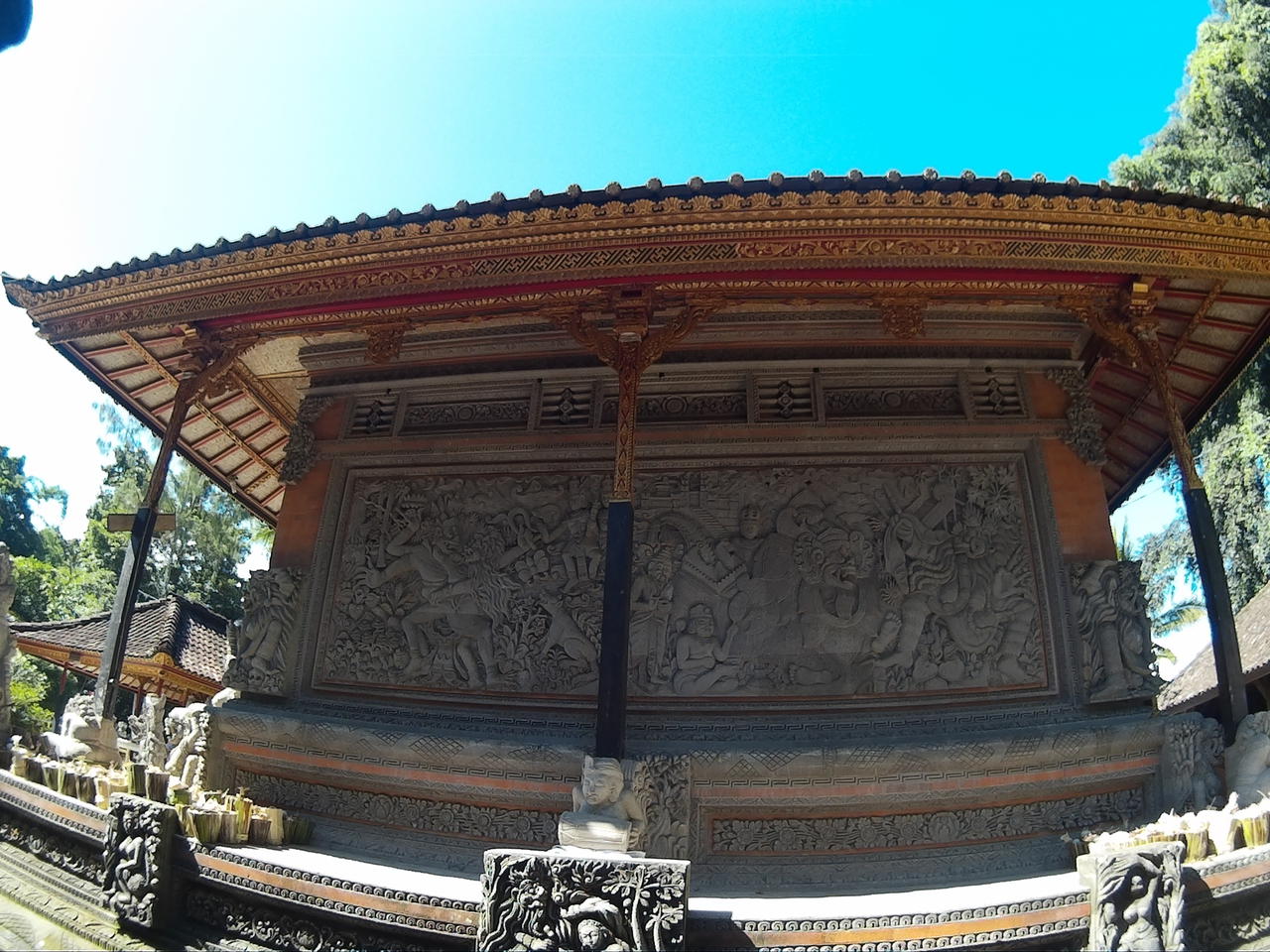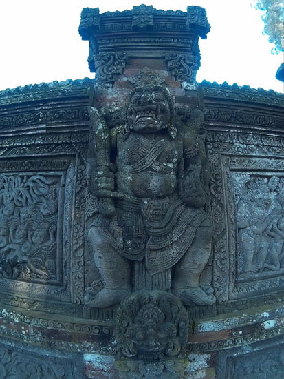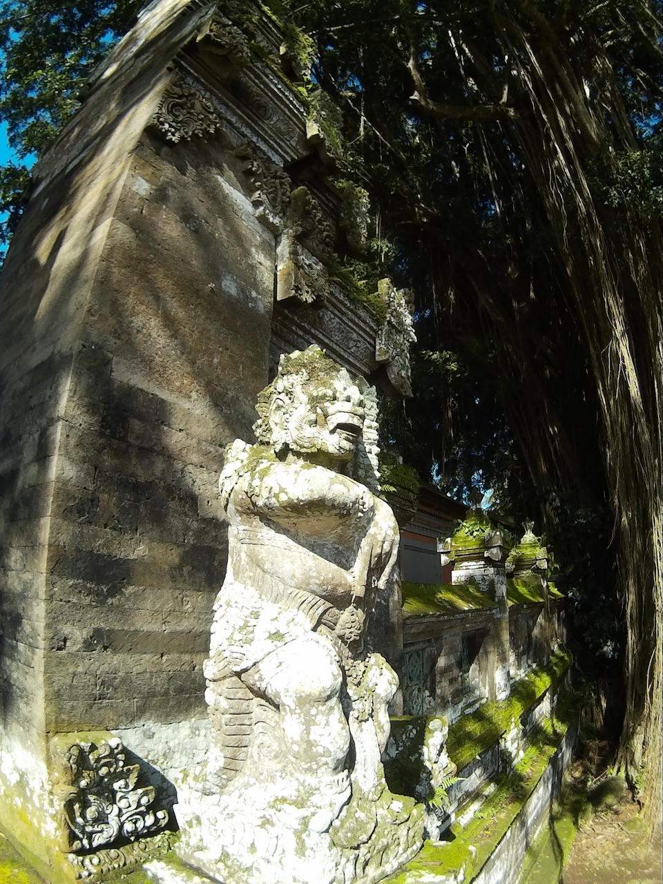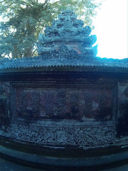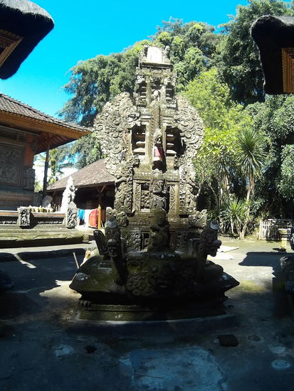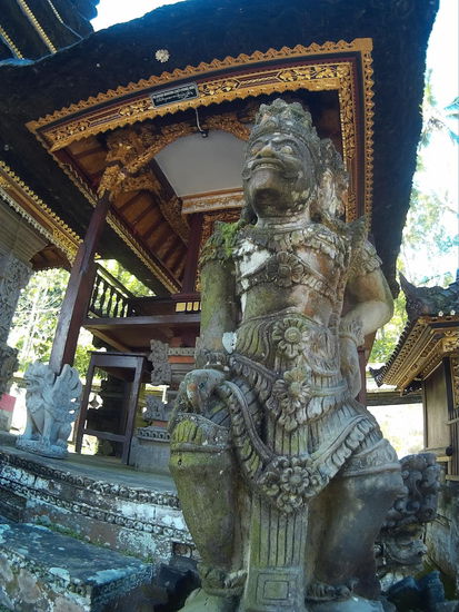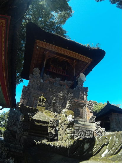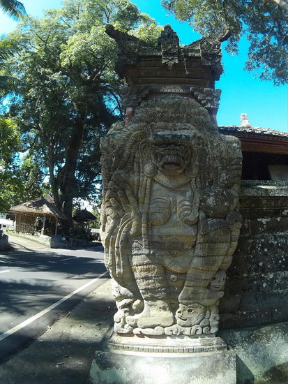 Da ich eine Nebenstraße fahre, stoße ich zufällig auf den ersten der zwei Tempel, die noch auf der Ubud und Umgebung Liste stehen, den Pura Dalem Panunggekan. Naja, wenn ich jetzt schon hier bin. Ich parke den Roller und fotografiere den Tempel von aussen.