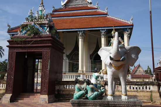 Diese Nacht haben wir sehr gut geschlafen, denn unser Hotelzimmer liegt sehr ruhig im Garten des Hotels. Wir frühstücken gegen 8:15 Uhr. Man kann wählen zwischen verschiedenen Frühstücksvarianten. Wir entscheiden uns für Omelette mit Speck, Toast und Butter. Dazu gibt es grünen Tee und einen Obstteller mit Banane und Papaya. Danach holen wir unsere Sachen aus dem Zimmer und treffen uns mit unserem Tuk-Tuk-Fahrer Chai. Zuerst fahren wir zu dem Kloster Tahm Rai Saw. Das bedeutet soviel wie Kloster des weißen Elefanten.