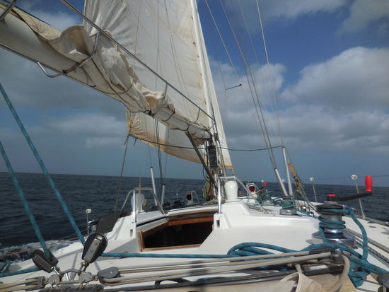 Zur White Times: Es ist eine 17m-Yacht mit einem fast 5m-Kiel, gebaut in Italien, eine Grand Soleil 52, hochseetauglich, ausgerüstet mit allem elektronischen Pipapo. Ein irre reicher Schweizer hat sie bauen lassen, sie nach seinem Herkunftskanton Aargau benannt, war damit ein einziges Mal segeln, hat sich die Seele aus dem Leib gekotzt und das Schiff nie wieder betreten, sondern sofort verkauft. Irgendwann hat Eugenio - "Eugene"- die Yacht gekauft und hat mit ihr definitiv seinen Spaß in Portugal, auf dem Atlantik, zwischen den Kanaren und den Azoren gehabt. Aber auch er muss Geld verdienen, der Unterhalt eines solchen Babies ist nicht billig. Er segelte zu den Kapverden, denn nur hier kann er ganzjährig segeltechnisch unterwegs sein und auch fast jeden Tag kommerziell.