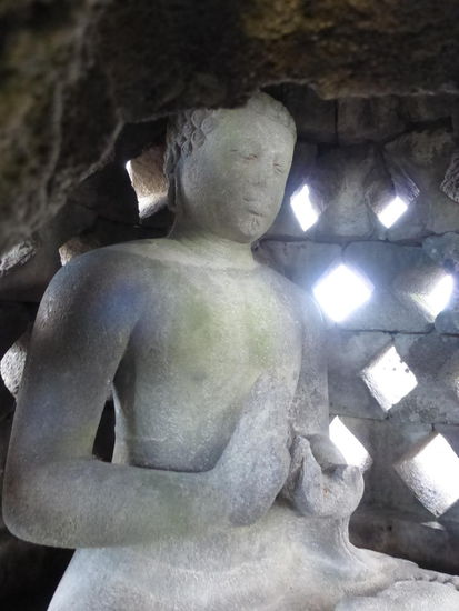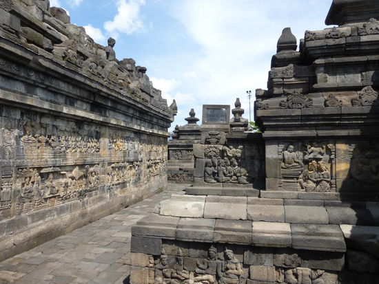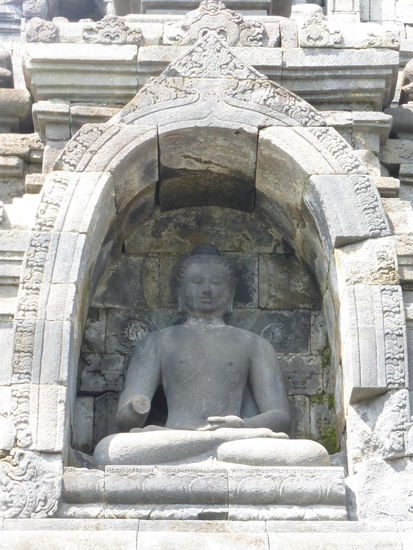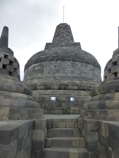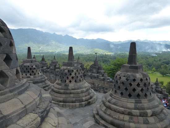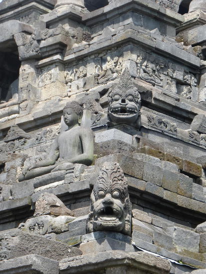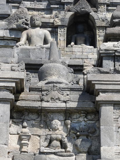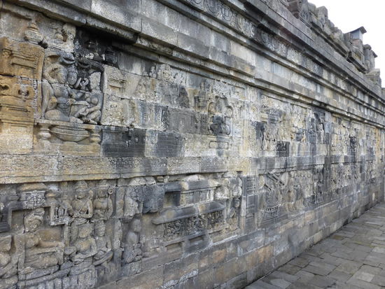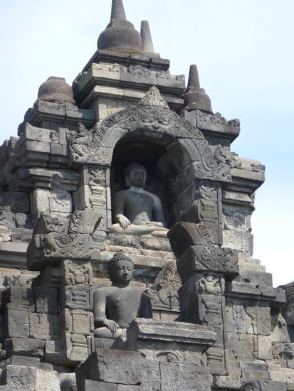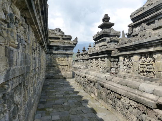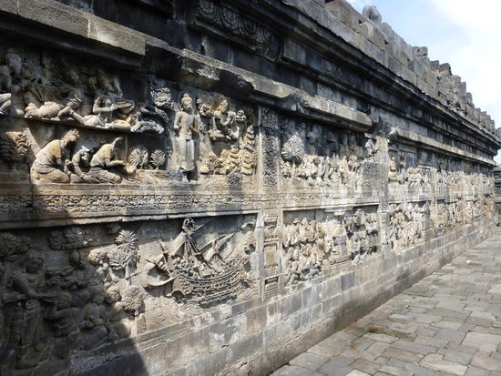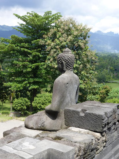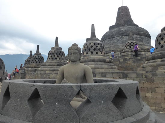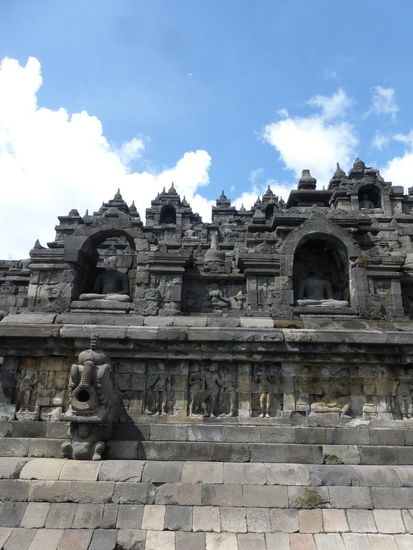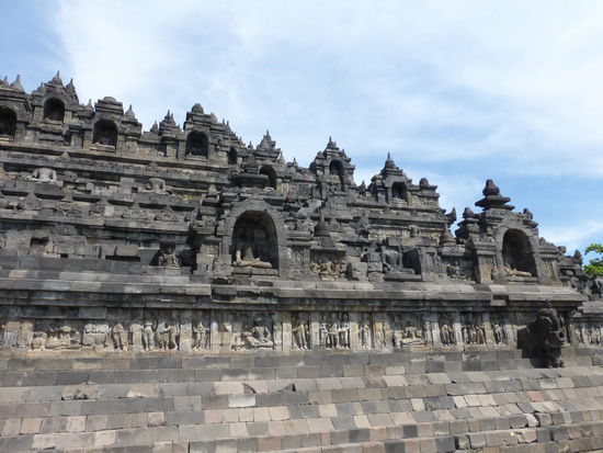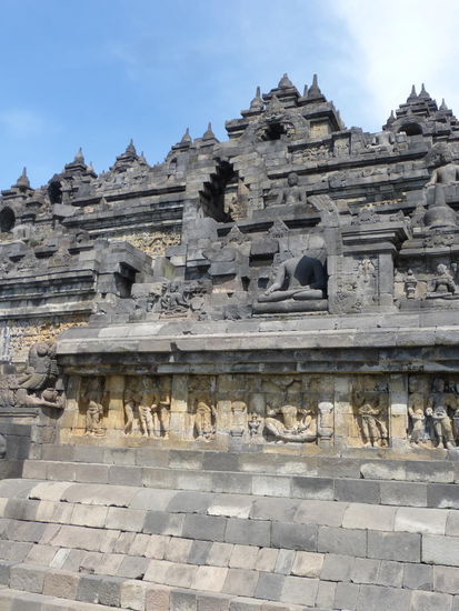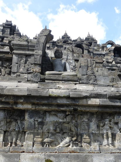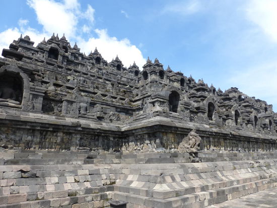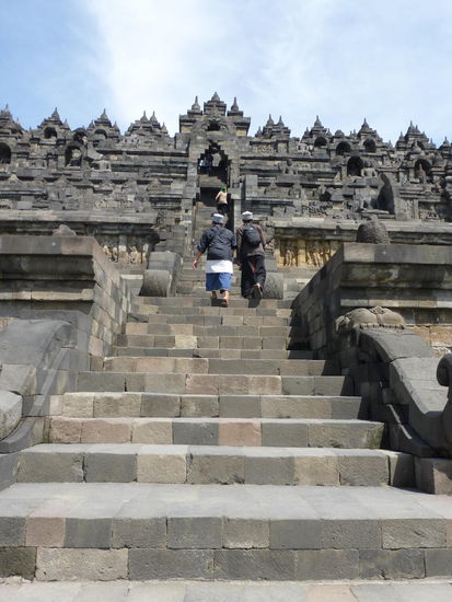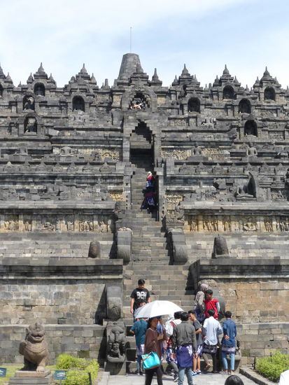 Mein Besuch der indonesischen Insel Java ist nicht etwa irgendwelchen Nationalparks oder Vulkanen geschuldet die viele andere Touristen gerne auch im Umfeld von Yogyakarta aufsuchen sondern in erster Linie Borobodur einer der größten buddhistischen Tempelanlagen in Asien die ca. 30 km nordwestlich von Yogyakarta steht. Das Stupa - ähnliche Bauwerk des Mahayana - Buddhismus wurde während der Herrschaft der Sailendra Dynastie in den Jahren 750 bis 800 erbaut . Ab den 11. Jh. verlagerte sich das Machtzentrum auf der Insel Java etwas weiter nach Osten und Borobodur geriet in Vergessenheit. Durch die Vegetation und durch die Asche die von Vulkanen in der Umgebung u.a. durch den Merapi ausgespuckt wurde verschwand der Tempel nach und nach aus dem Sichtfeld. Außerdem wurde die Anlage bis zum heutigen Tage immer wieder durch Erdbeben beschädigt. Erst mehr als 700 Jahre später entdeckte Thomas Stamford Raffles den Tempel zufällig unter einen Hügel wieder als er auf einer Reise nach Semarang unterwegs war. Erste Freilegungen und Restaurierungsarbeiten erfolgen aber erst einige Jahre später aber richtig los ging es ab 1905 als die Holländer unter Leitung von Theodor van Erp die Ausgrabungen übernommen haben. Dieser Aufbau der immer wieder mit großen baulichen und finanziellen Schwierigkeiten kämpfen musste hält bis heute an. Unter Aufsicht der UNESCO wurden mit Hilfe von Sponsoren und des indonesischen Staates alleine in den letzten 40 Jahren 25 Millionen US Dollar aufgebracht und Stein für Stein wieder aufgebaut. Ich habe mich mehrere Stunden hier aufgehalten und war begeistert genau wie die vielen Schulkinder die immer wieder Fotos mit mir machen wollten und fragten wie ich heiße , woher ich komme und wie mir Indonesien gefällt. Diese Informationen schrieben sie alle in Ihre Schulhefte um sie später mit Ihrer Lehrerin auszuwerten. BOROBODUR gehört für mich zu einen meiner absoluten Highlight die ich bisher auf meinen Reisen gesehen habe. Seit 1991 gehört diese Anlage selbstverständlich auch zum UNESCO WELTKULTURERBE.