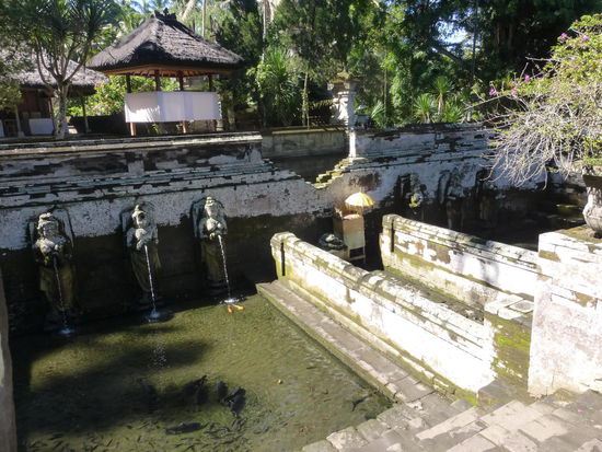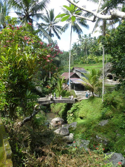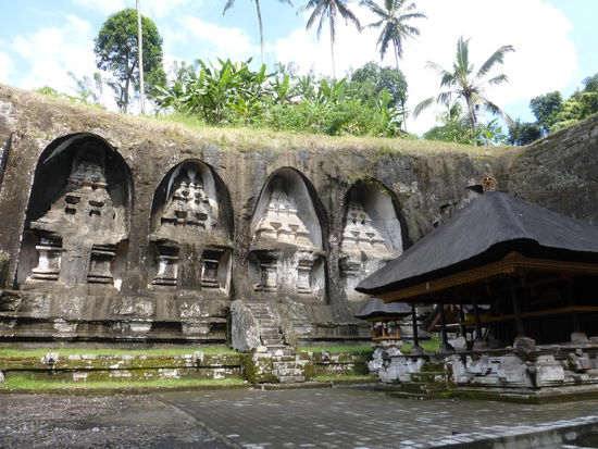 Weiter geht es zum nächsten Heiligtum den Gunung Kawi . Dieser Grabkomplex in dem u.a. der König Udayana und seine Familie Ihre letzte Ruhe fanden wurde im 11. Jh. an einer steilen Schlucht des Pakrisan Flusses umgeben von herrlichen Reisterrassen erbaut. Gunung Kawi weißt deutliche Spuren von javanischen Einflüssen auf den auf Bali gibt es Felsendenkmäler wie hier sonst eher nicht.