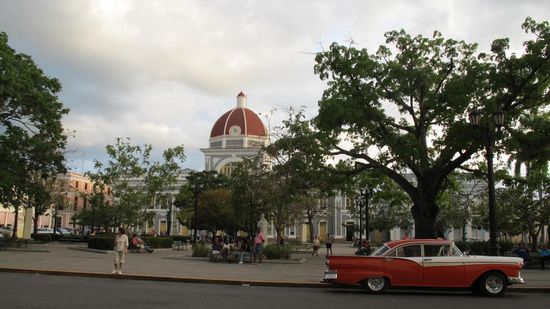 Zum Glück ging es mir heute Morgen wieder deutlich besser und wir konnten weiterziehen nach Cienfuegos. Es fiel uns sehr leicht, das Casa Particular zu verlassen, denn die "Herrin" war uns durch und durch unsymphatisch. Die ältere Dame hatte ordentlich Personal in ihrem Heim, das sie herumjagen konnte. Bester Angestellter war wahrscheinlich ihr Ehemann, der alles tat, was sie von ihm verlangte. Wenn sie eine Comicfigur wäre, würden in ihren Augen wohl ständig Dollarzeichen aufleuchten. $$$ Das Zimmer war zwar mit Abstand das schönste und grösste, das wir bisher hatten, aber richtig wohl fühlten wir uns aus besagten Gründen eigentlich nicht dort.