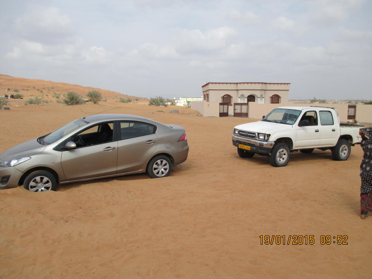 Die Fahrt geht ueber Sur, welches sich als nettes ruhiges Staedtchen an der Kueste entpuppt, nach Bidiyah. Die Sandduenen sind ziemlich durchorganisiert, die Einheimischen haben die Touristen als Einnahmequelle erkannt. Na ja, sonst ist da auch nicht viel zu verdienen. Meinen Obulus hab ich natürlich auch geleistet, nachdem ich meinen Mietwagen bis zu den Achsen im Sand versenkt habe. Für's rausziehen leiste ich meinen Beitrag.