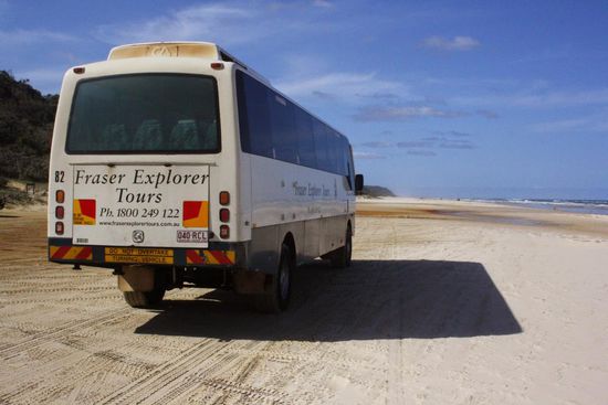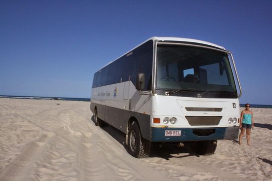 Nach der Führung durch den Regenwald fuhren wir zurück zum Eurong Beach Resort, wo die Leute, die am Lake McKenzie erst eingestiegen waren, wieder ausstiegen. Unser Guide erklärte uns zwischenzeitlich, dass die Tagestouren auch dafür genutzt werden um Gäste der mehrtägigen Touren an den nächsten Ort zu bringen.