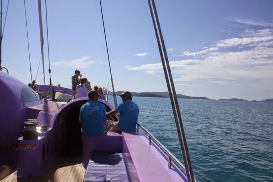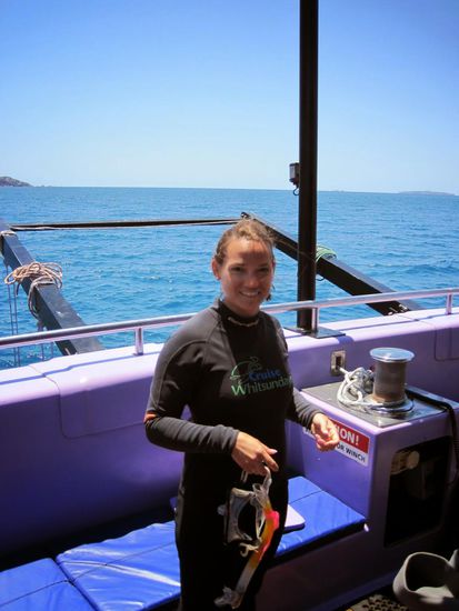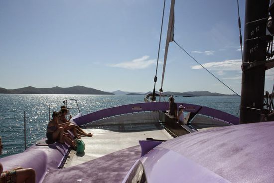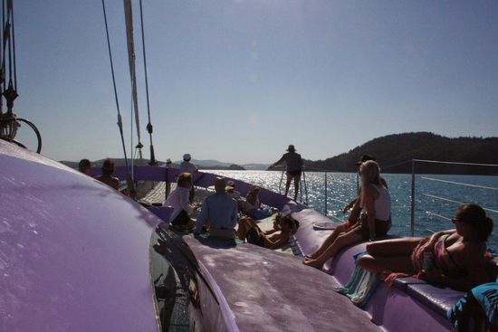 Als erstes Ziel steuerte der Kapitän dann Daydream Island an, wo noch ca. 10 Personen von dem dort ansässigen Ressort mit einem Schlauchboot abgeholt wurden. Somit waren nun knapp 50 Personen an Board, was absolut angenehm war.