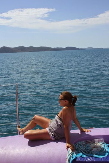 Die Camira schipperte vor sich hin und wir genossen das tolle Wetter und die Aussicht. Nach einer Weile fuhren wir in eine wunderschöne Bucht ein.