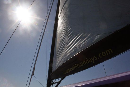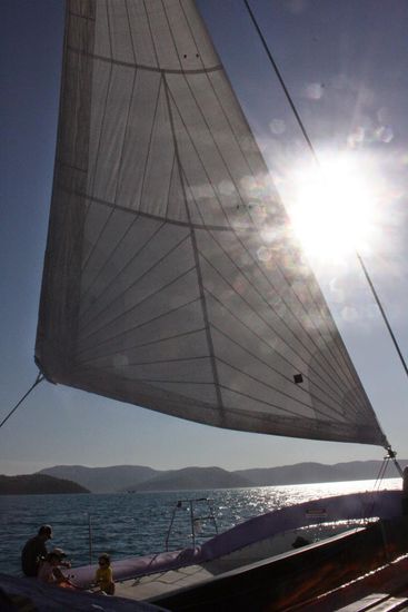 Die Crew hisste das 25 Meter hohe Segel und wies uns darauf hin, dass ab jetzt entspannen auf dem Programm steht.