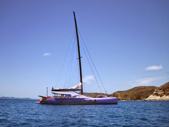 Um 7:00 Uhr morgen sammelte uns der Bus von Cruise Whitsundays ein und brachte uns zum Port of Airlie Beach. Das neue Terminal wurde erst im September geöffnet und ähnelt einem Flughafenterminal. Von dort aus starten die Schiffstouren und die Gäste werden zu den Ressorts auf den verschiedenen Inseln der Whitsunday Inselgruppe gebracht.