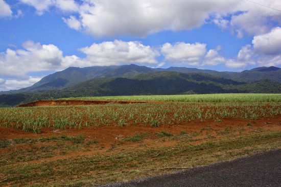 Über Bowen und Townsville führte uns der Bruce Highway nach Mission Beach. Diese Fahrt dauerte eine gefühlte Ewigkeit. Kilometer für Kilometer ging es gerade aus durch wechselnde Landschaften, bestehend aus Bergen, Bäumen, Bananen- und Zuckerrohrplantagen.