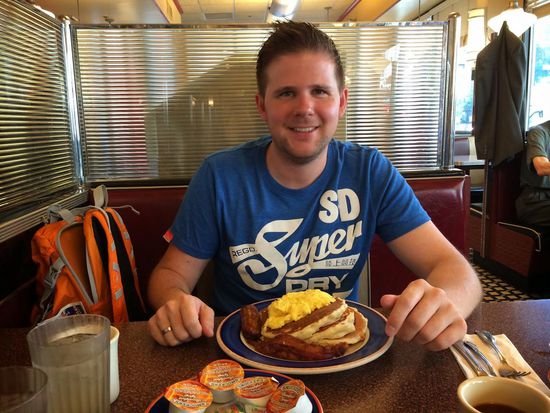 Nachdem am 3. Tag endlich unsere eigene innere Uhr sich an die Zeitumstellung gewöhnt hatte, konnten wir das gesunde und vitaminreiche Frühstück im Diner um die Ecke endlich genießen. Es gab 3 Pancakes mit Schinken, Rührei und ordentlich Ahorn-Sirup. Wow, danach ist man satt bis zum Abendessen.....