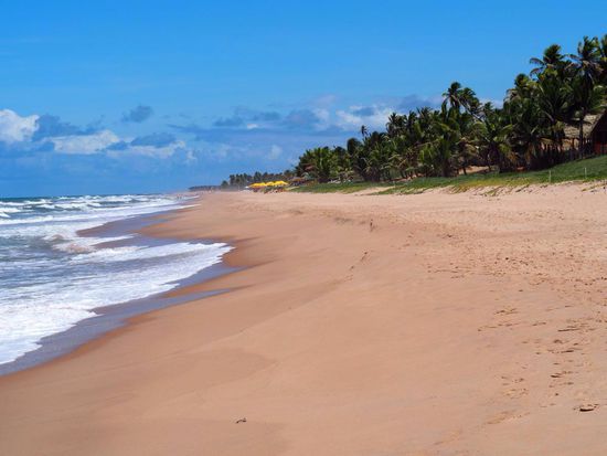 Einsame, kilometerlange Traumstrände machen uns zu „Strandläufer“ – erfrischende Kokosnüsse und gekühltes Skol (Cerveja) gibts in den wenigen Strand-Baraca’s