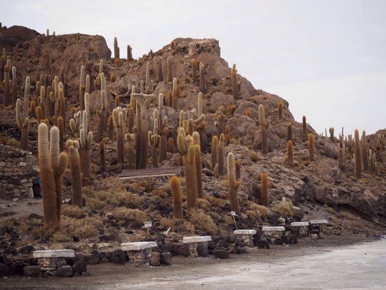 Wir halten kurz bei „Isla del Pescador“ – die Insel am Salzsee ist für die riesigen Kakteen berühmt.