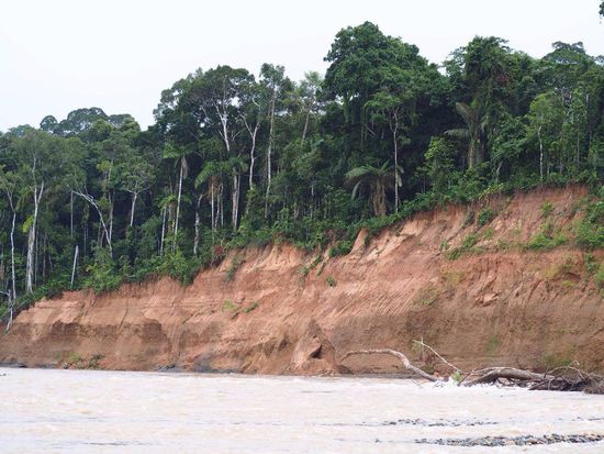 Am nächsten Morgen geht es mit kleinem Gepäck gemeinsam mit unserem Guide Pedro, der Köchin Rosi und und dem Bootsmann Carlos sechs Stunden flussaufwärts in den Madidi-Nationalpark zu unserer Lodge. Leider kommt es zeitweise zu stärkeren Regenfällen, sodass die Bootsfahrt kein besonderes Erlebnis ist.