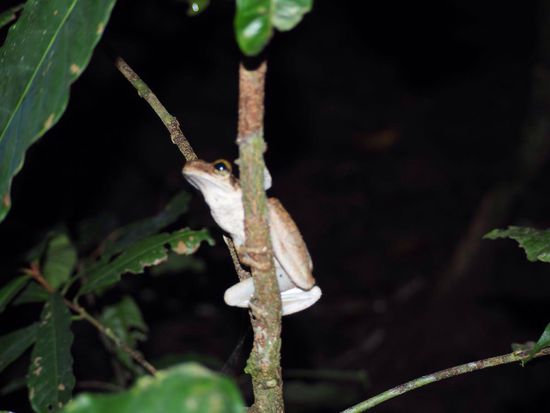 Am dritten Tag können wir die Suche nach wilden Tieren fortsetzen, wenn auch etwas abgespeckt... geplant war für den 3. Tag eine Ganztagestour, die wir leider aufgrund des unbeständigen Wetters nicht bestreiten können. Beim Vormittags-Trek hören wir eine Herde Wildschweine – das macht schon etwas nervös... Die Flora ist grandios – hunderte Jahre alte Bäume, die über 40 m in die Höhe ragen. Pedro weist uns auch immer wieder auf Heilpflanzen im Urwald hin, die von den Dorfbewohnern nach wie vor angewendet werden.