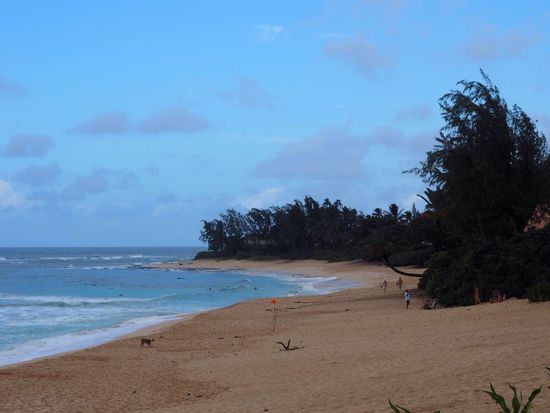 Um die Insel zu erkunden nehmen wir für die nächsten beiden Tage ein Leihauto... das Wetter hat sich etwas gebessert. Wir starten am North Shore, wo sich die berühmten „Surf Breaks“ wie Pipeline, Sunset und Waimea befinden. Im Winter rollen hier die Riesenwellen an und es trifft sich die internationale Surferszene... aufgrund des Wetters sind aber auch jetzt recht hohe Wellen an den schönen Stränden.